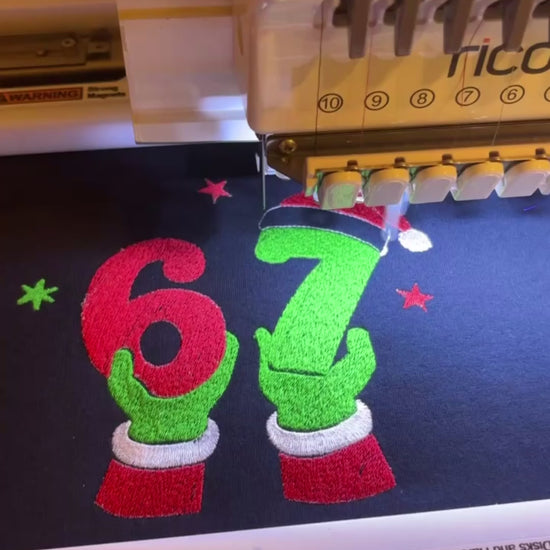 Get into the holiday spirit with our Embroidered 67 Tee! This Christmas tshirt features a unique embroidered design that will make you stand out at any holiday party. Show off your festive side with our playful and stylish tee. 'Tis the season to be jolly, and our tee is here to make sure you're spreading holiday cheer!